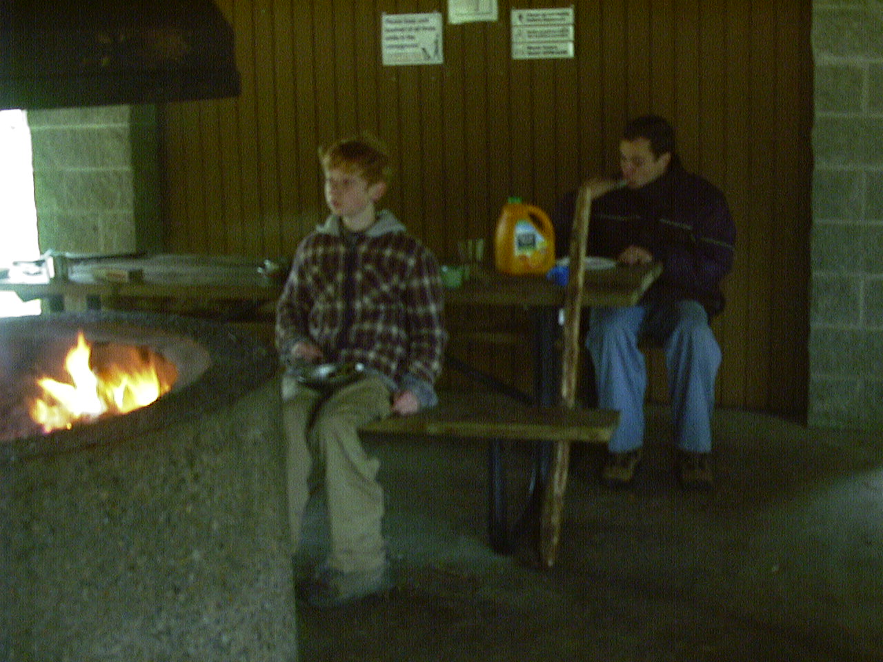 The covered shelter has a fireplace, which allowed people to warm up.