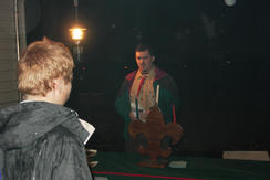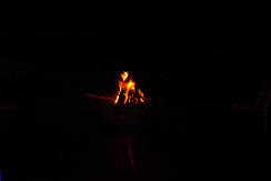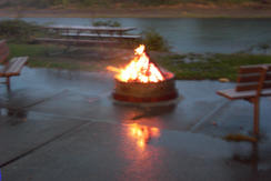 | Getting the campfire lit was interesting in the rain | Thomas, Kyle, and Ty attempt to light the candles in the wind.